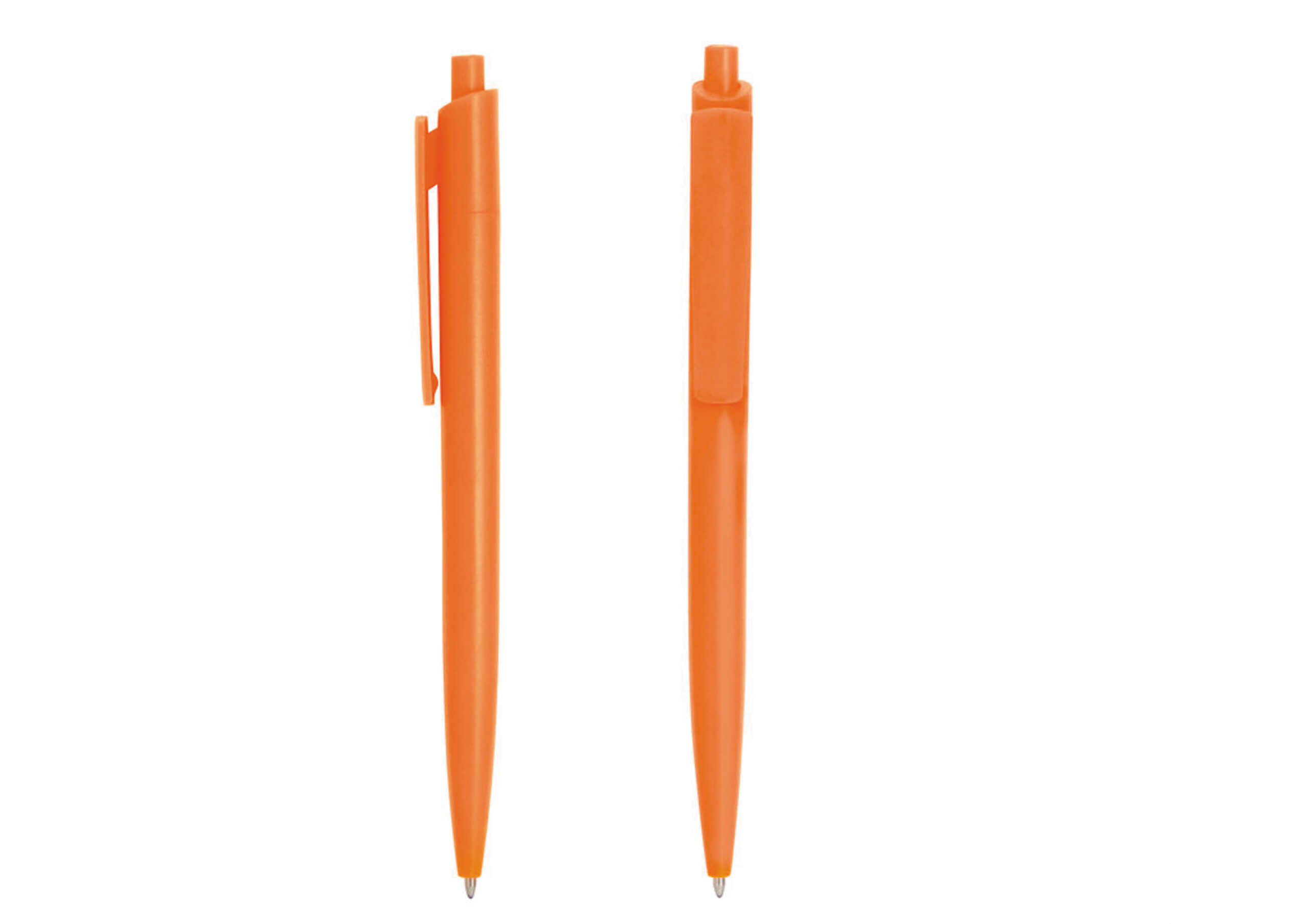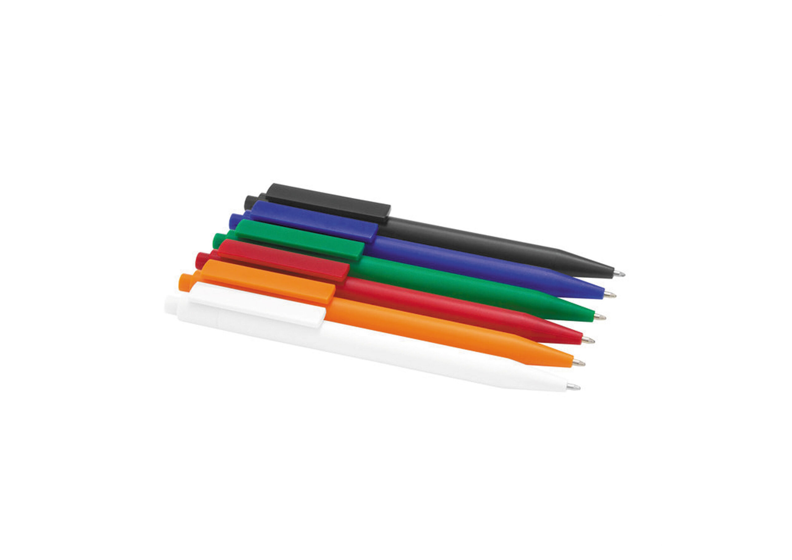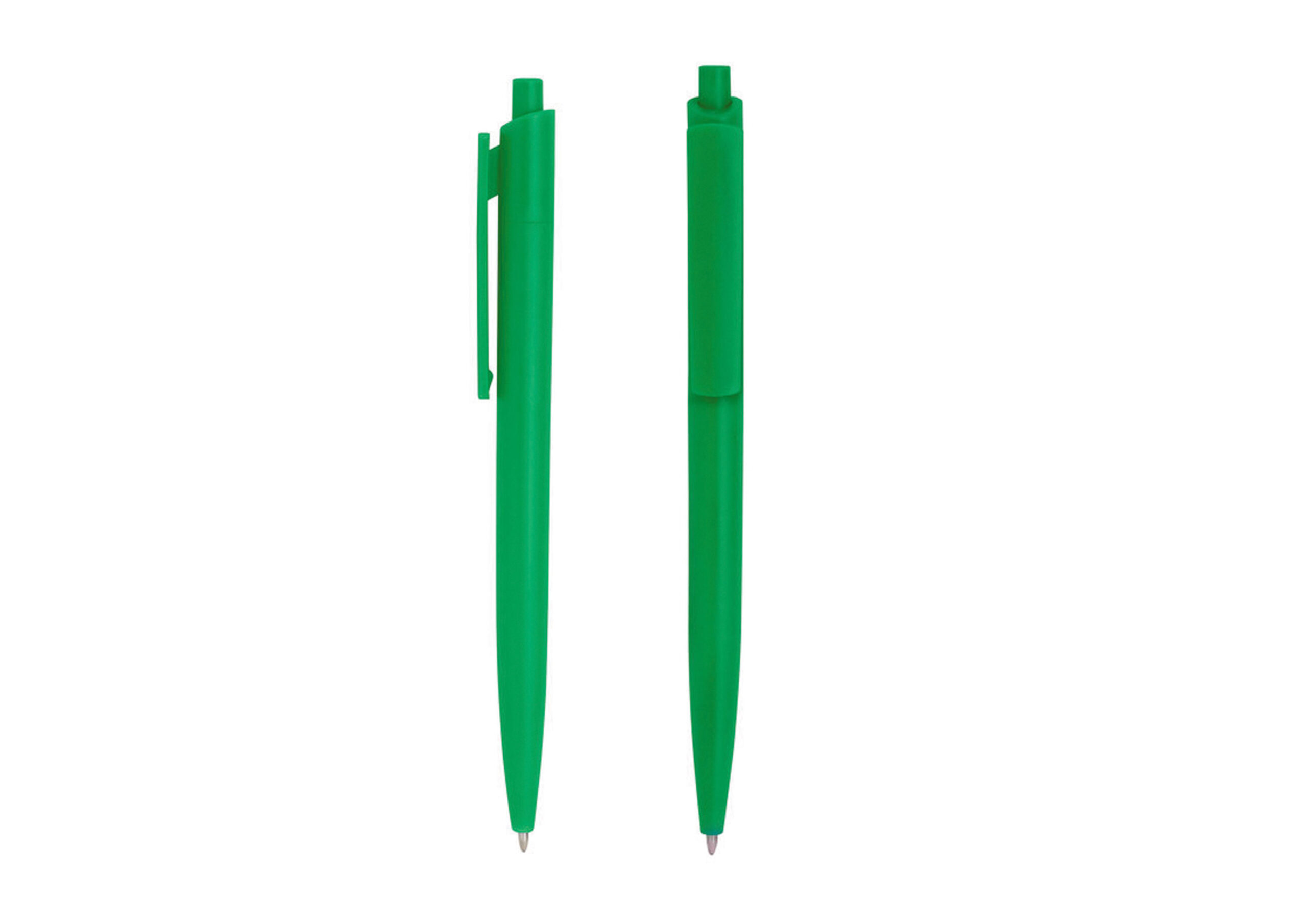Plástico ABS. Bolígrafo retráctil. Cuerpo y clip plásticos del mismo color, cuerpo acabado mate y clip acabado brillante. Tinta negra. Amplia área de impresión.