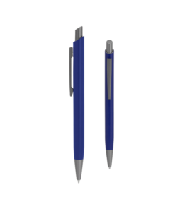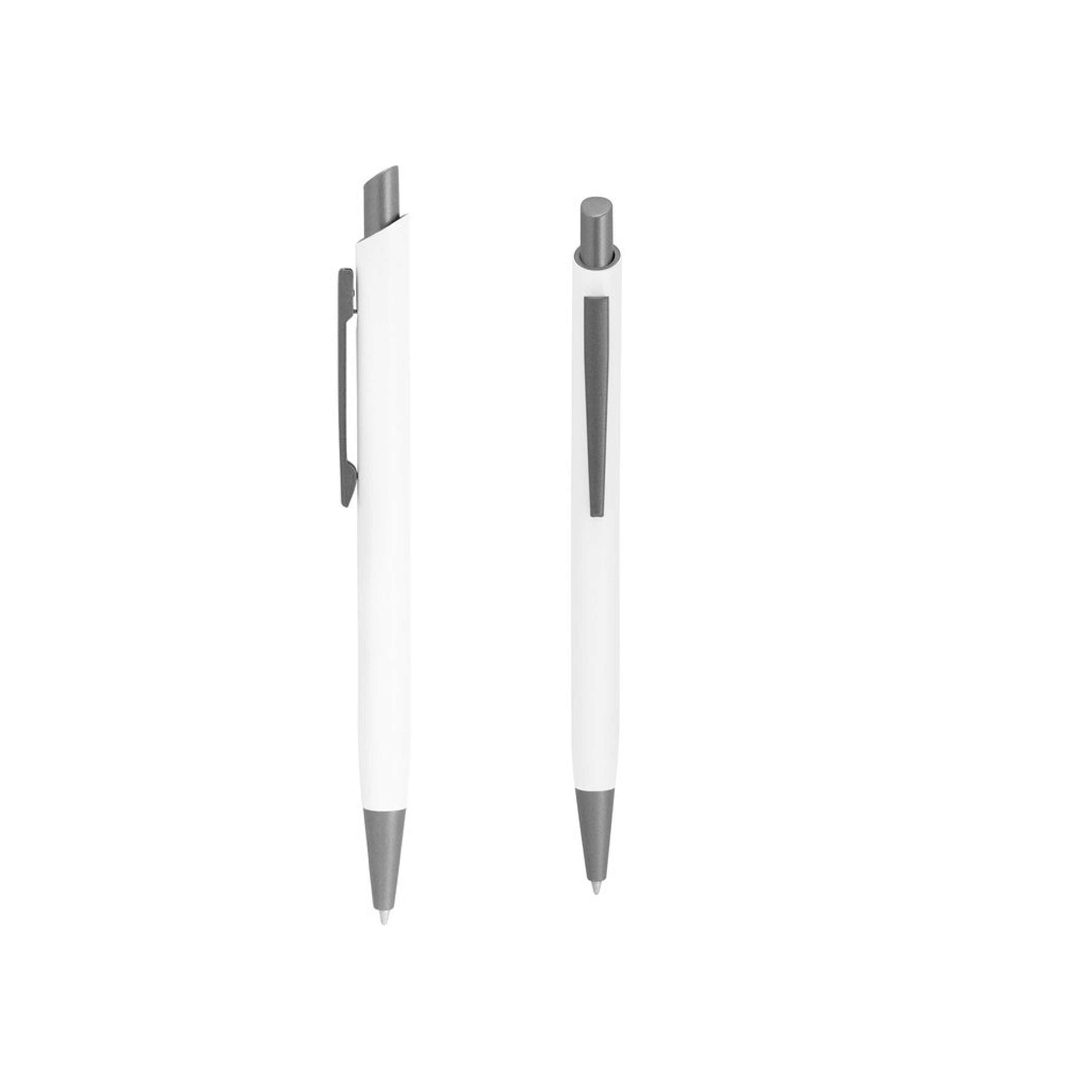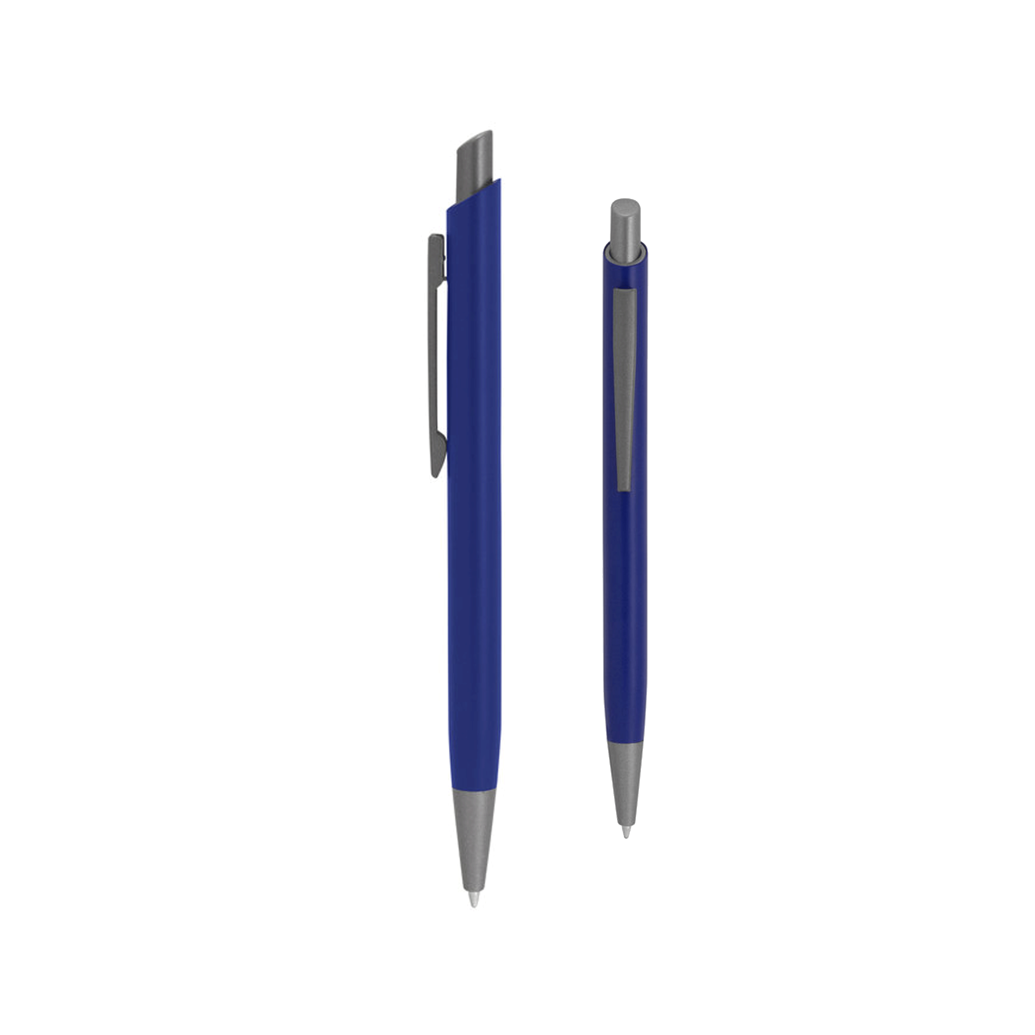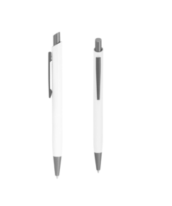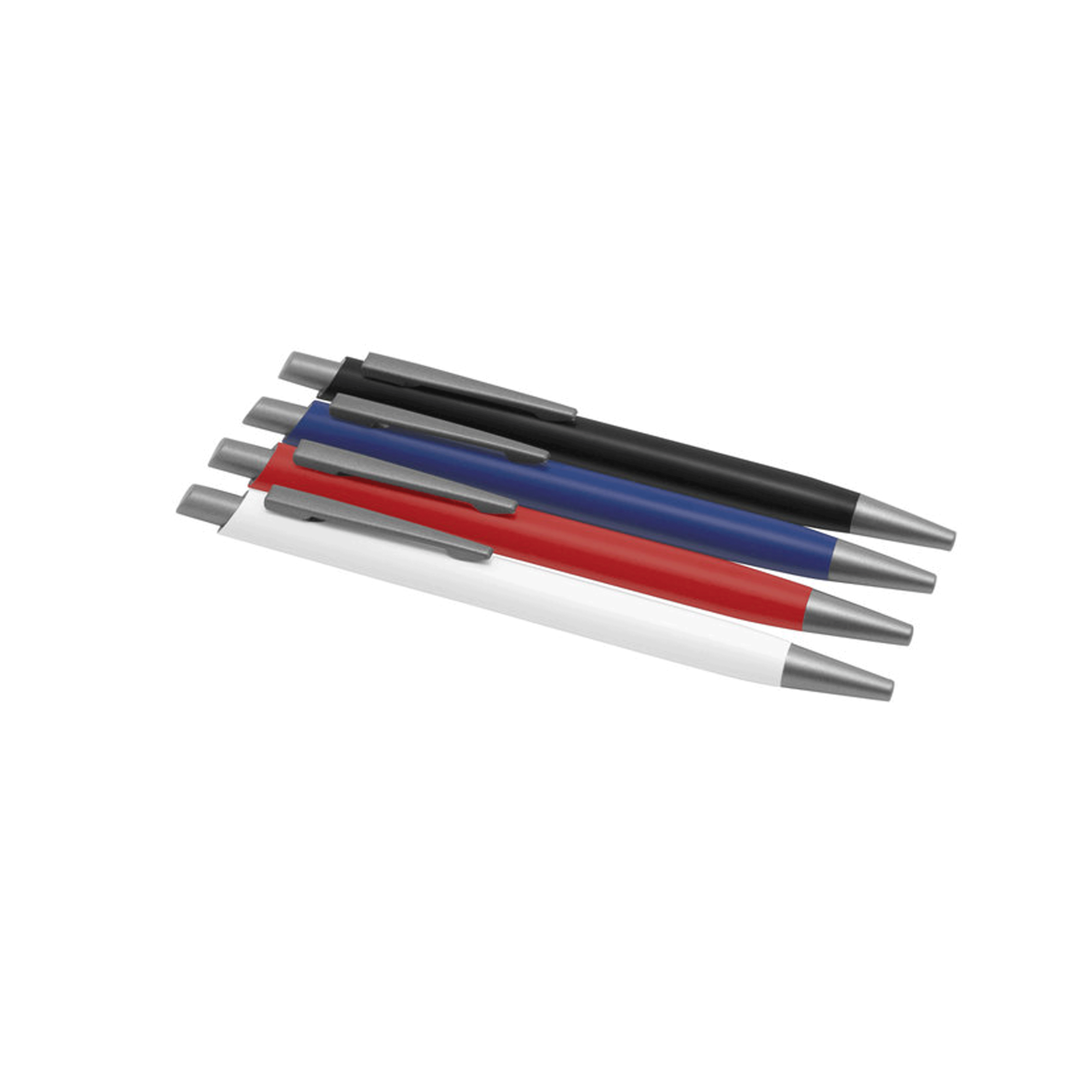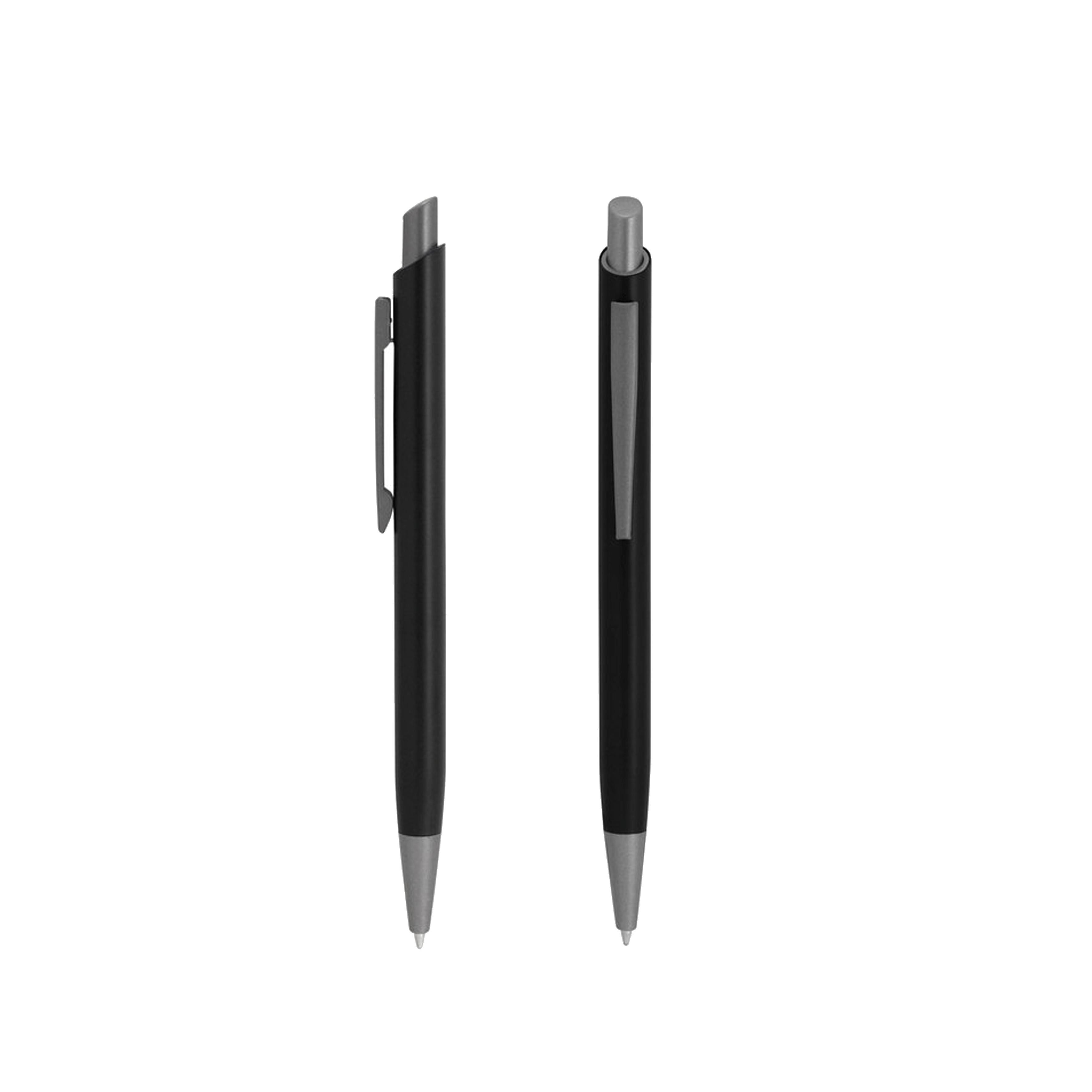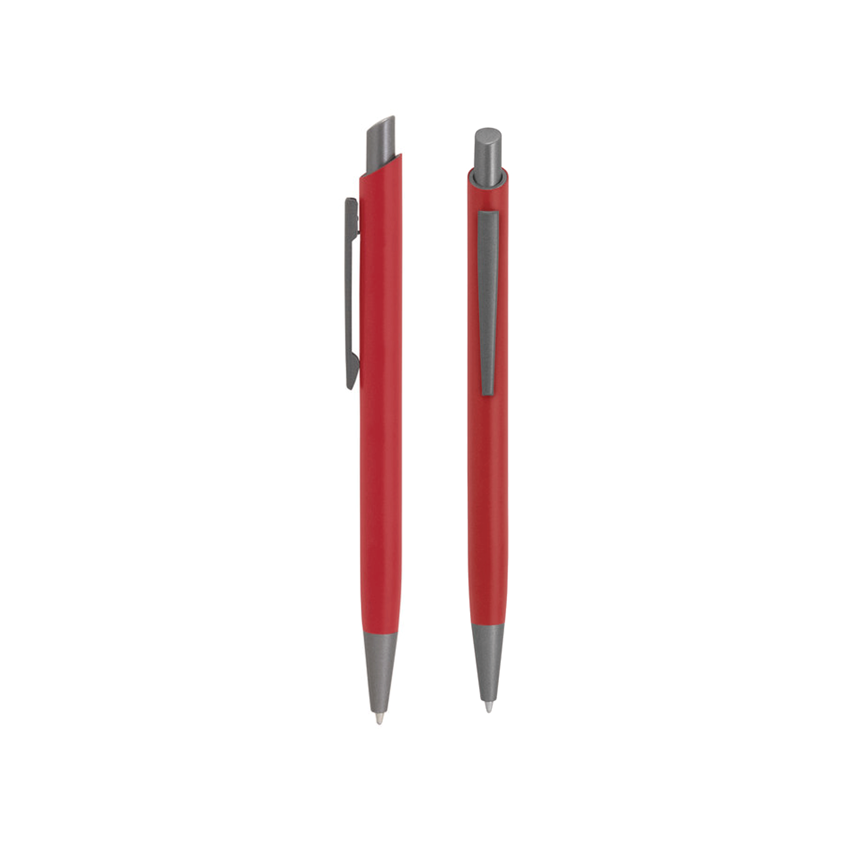 Aluminio, ABS, Acero. Boligrafo retráctil. Cuerpo revestido en laca de diferentes colores. Acabado mate. Pulsador, clip y puntera de color gris gun metal. Amplia área de impresión.
