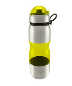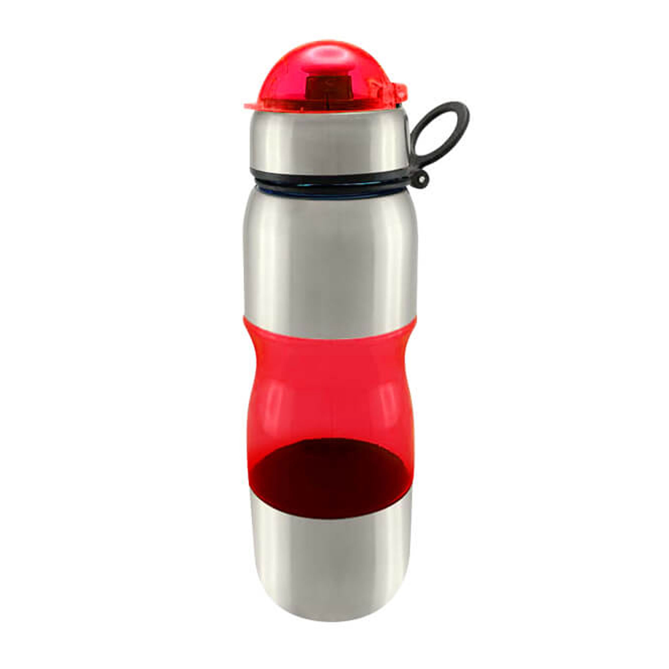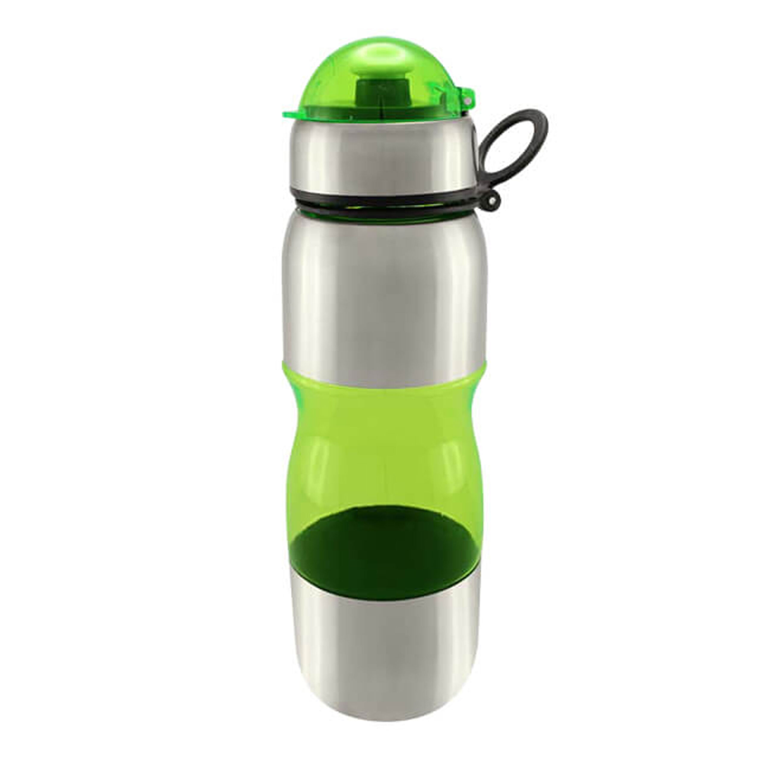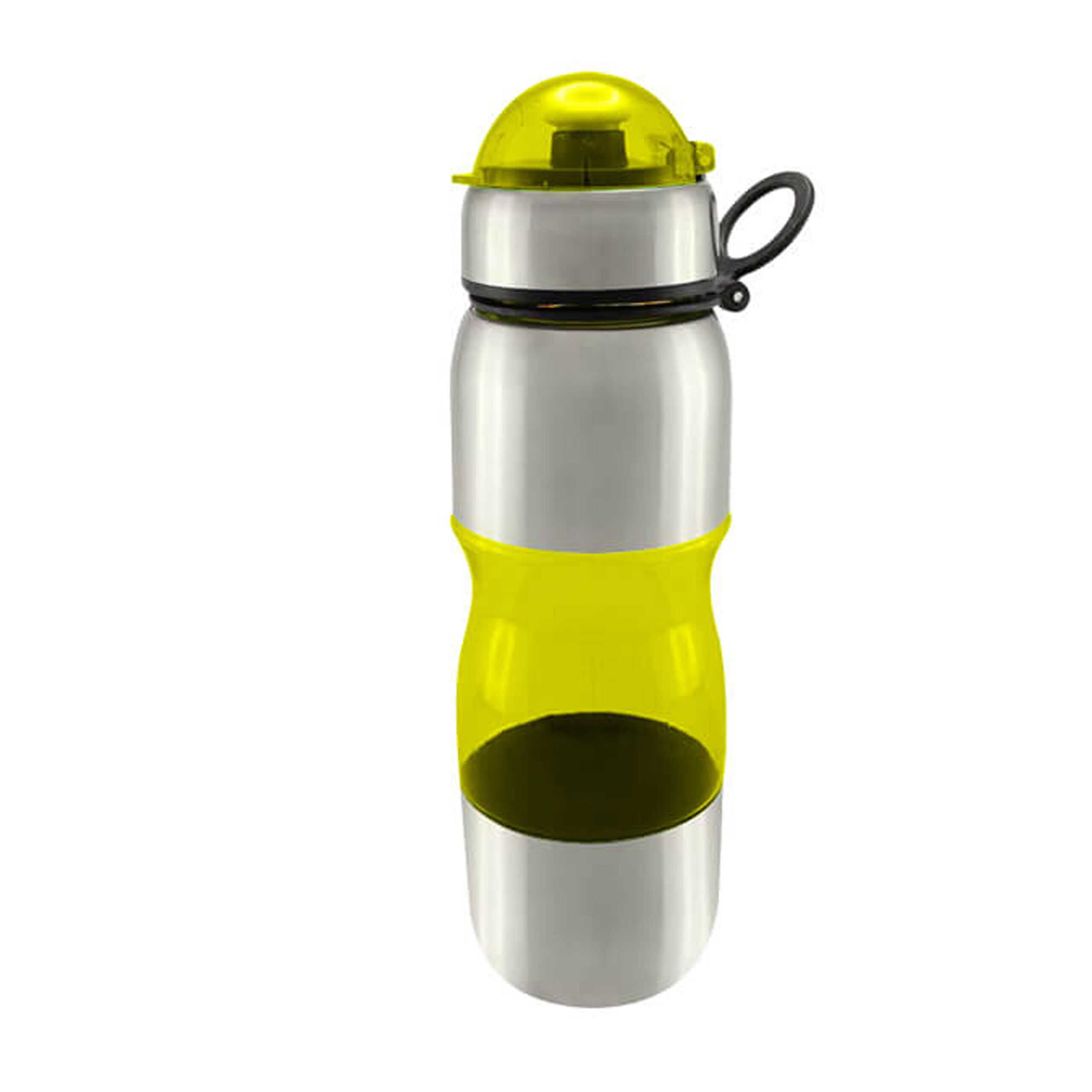 Caramayola de acero inoxidable SS201 y detalles plásticos en distintos colores. Tapa removible del mismo color de la botella.