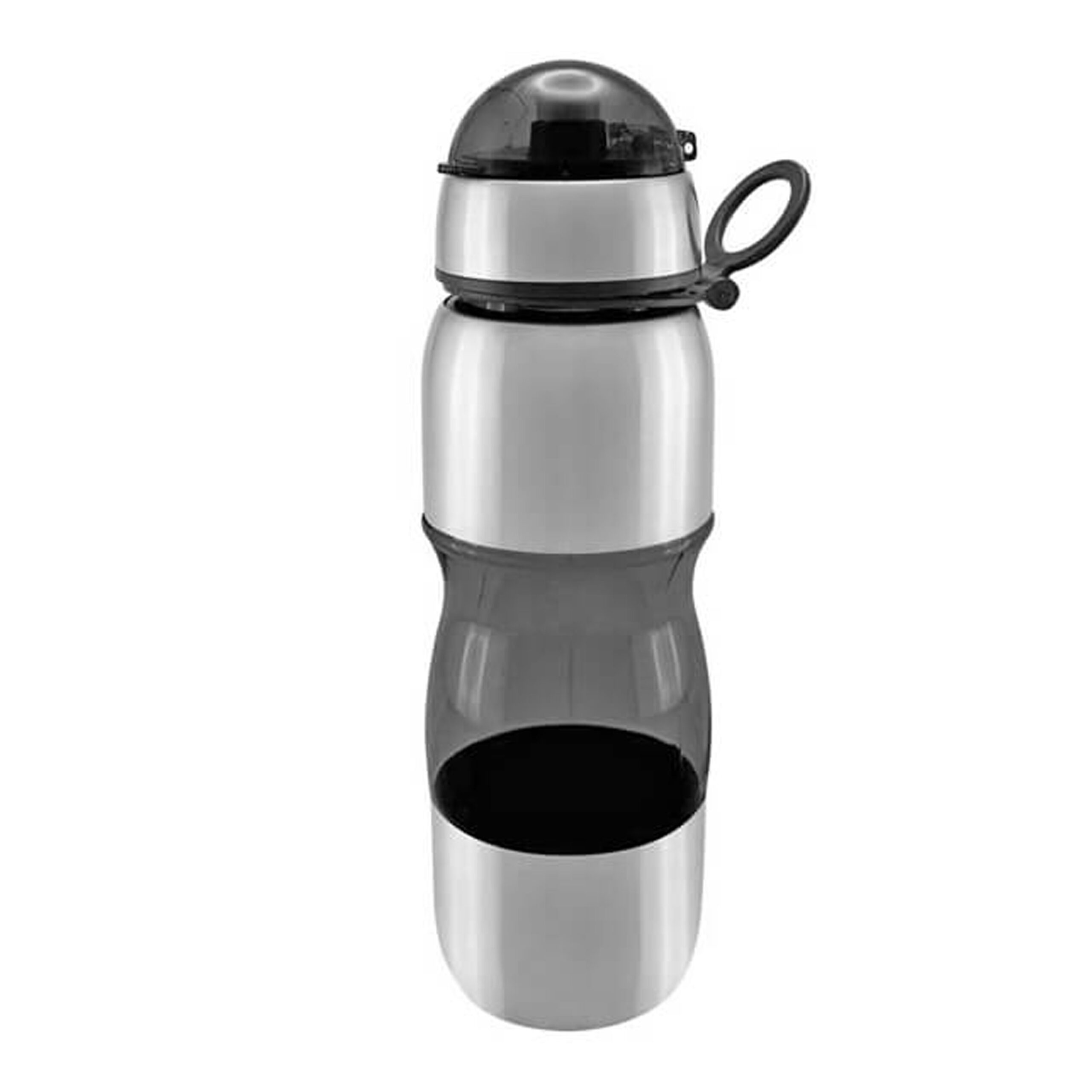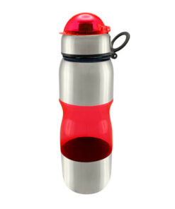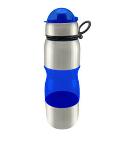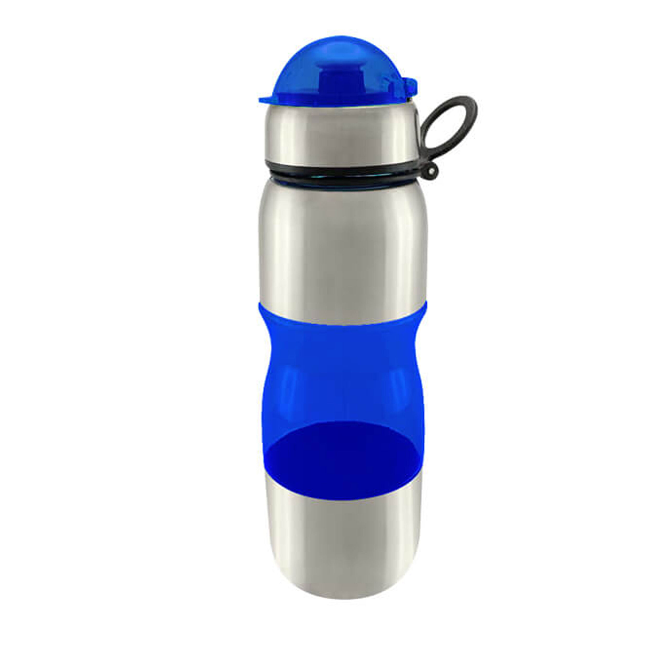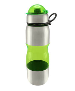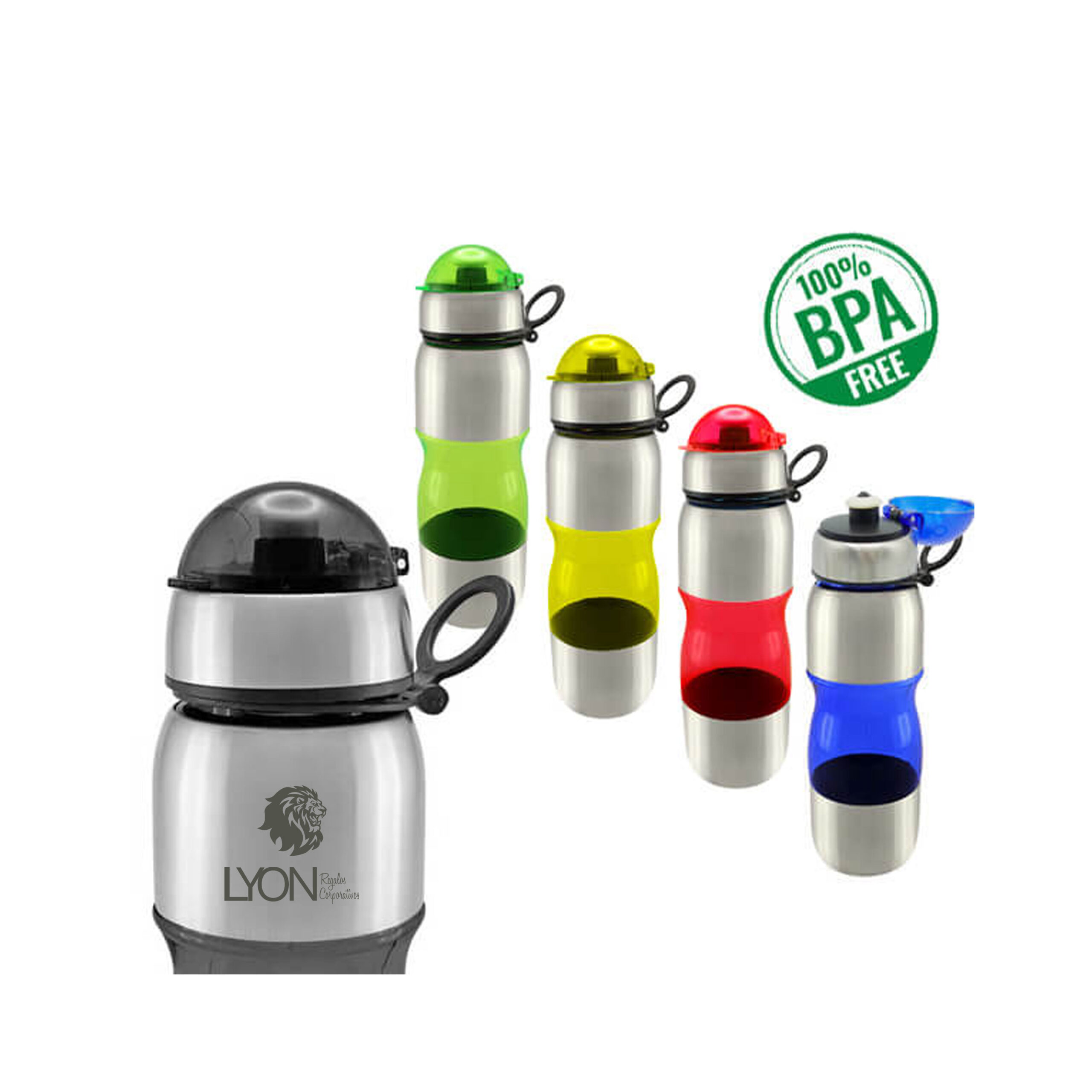 Caramayola de acero inoxidable SS201 y detalles plásticos en distintos colores. Tapa removible del mismo color de la botella.
